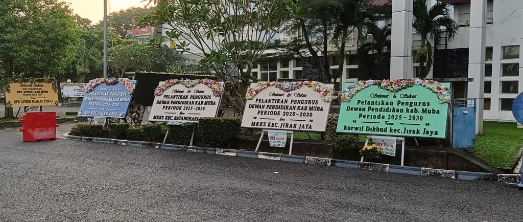 Pantauan di lokasi hari ini, Minggu (1/6/2025), berbagai ucapan selamat dalam bentuk karangan bunga telah memeriahkan area auditorium. Karangan bunga tersebut datang dari berbagai instansi dan kalangan sebagai bentuk dukungan dan harapan terhadap kepengurusan Dewan Pendidikan Muba yang baru.